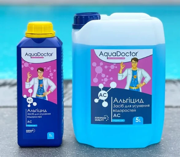 Альгіцид – це спеціальна хімія для басейну, яка пригнічує розвиток водоростей, грибків і бактерій. Його завдання не лише вбити вже наявну зелень, а й не допустити повторного цвітіння. При правильному дозуванні вода стає прозорою, без запаху та безпечною для купання.